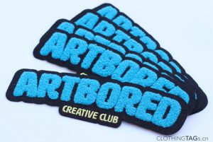 First, we need to choose the felt base fabric of the correct color, and then use a special towel embroidery machine to embroider the ordinary embroidery thread into an arched loop to create a fluffy three-dimensional effect. Finally, trim the chenille patch.